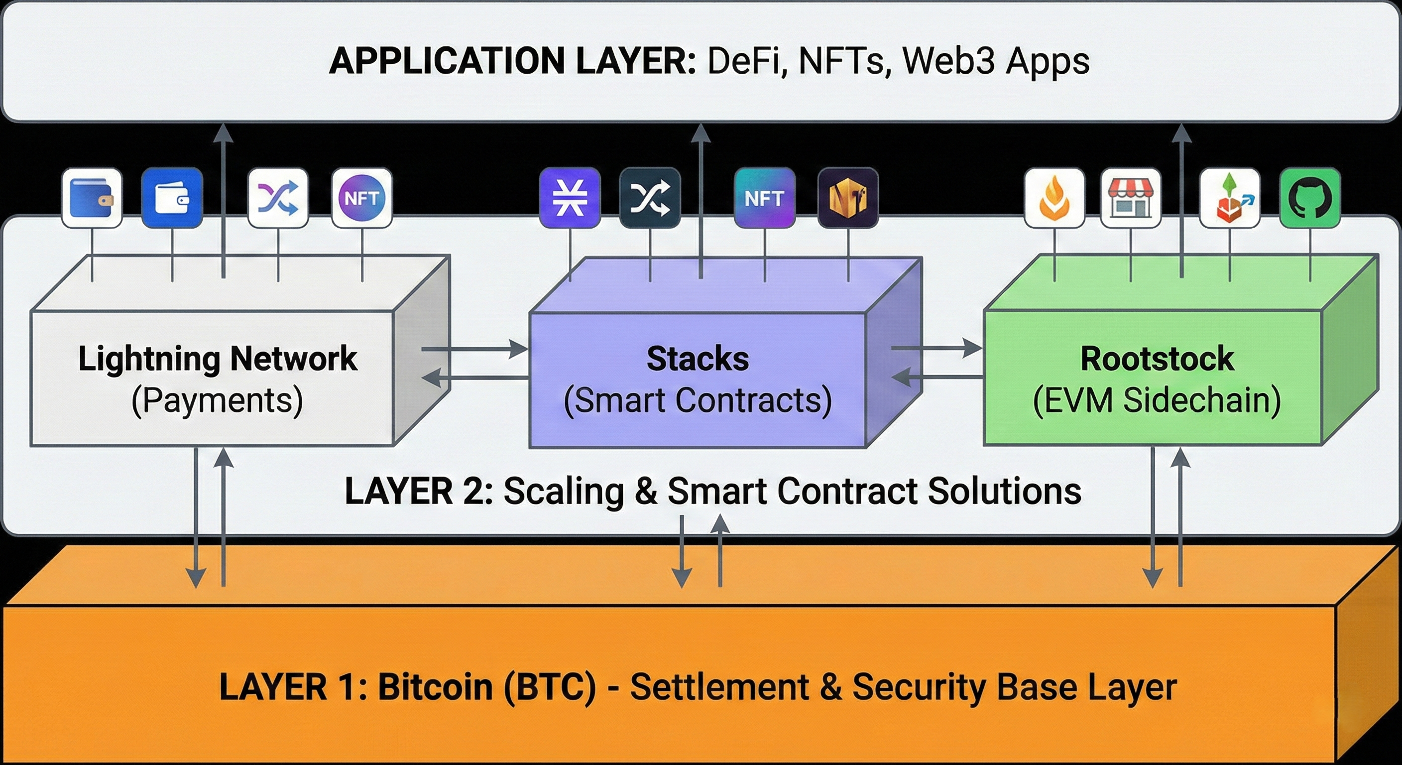 - 루트스탁 (Rootstock, RSK): 비트코인 채굴 보안성을 공유하며 이더리움 가상 머신(EVM)과 호환되는 사이드체인으로, 이더리움 기반의 DeFi 애플리케이션들이 비트코인 생태계로 이주할 수 있는 가교 역할을 하고 있다.