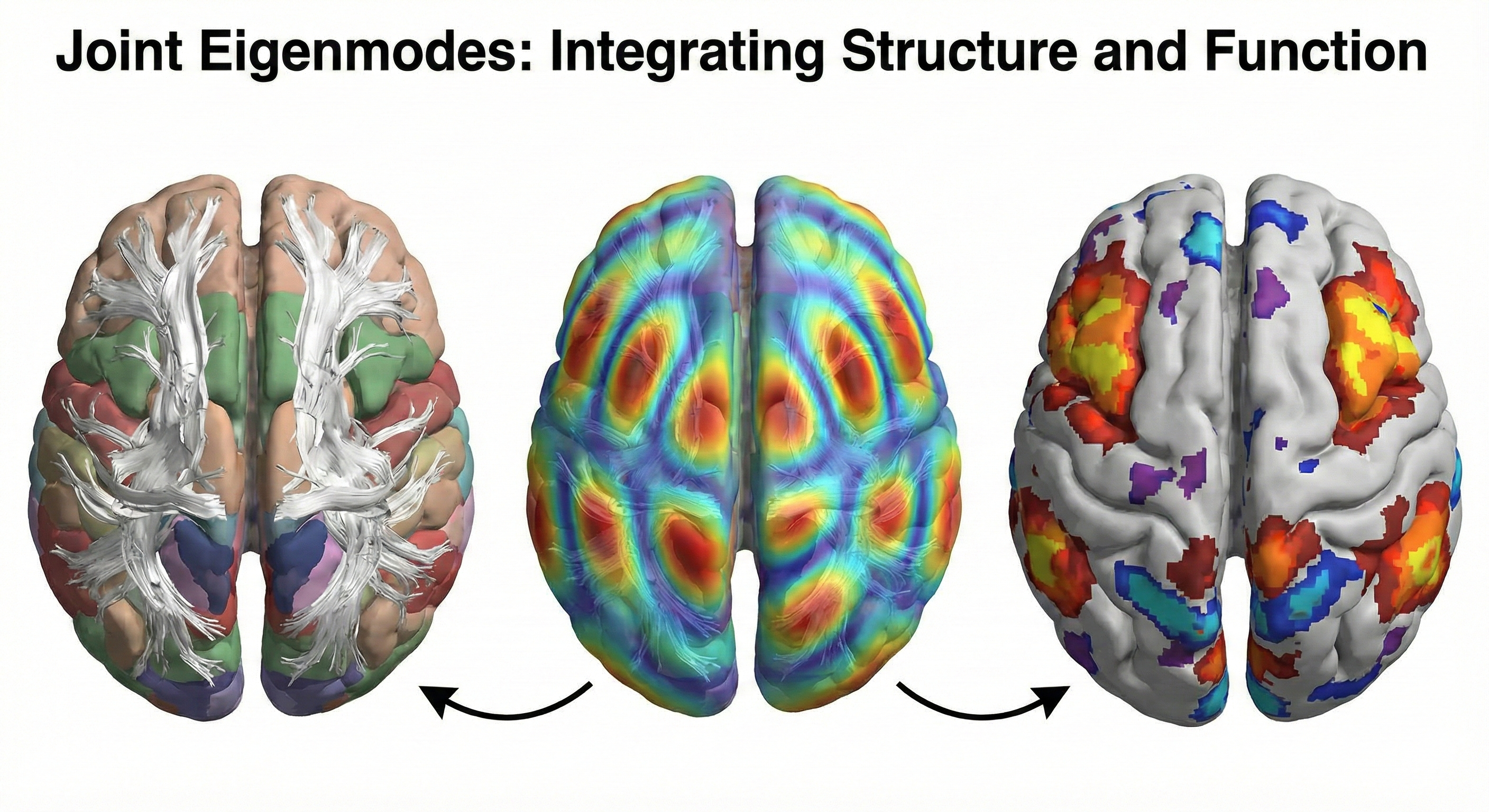최근 연구자들은 뇌의 구조와 기능을 동일한 수학적 공간에서 분석하기 위해 ‘공동 고유 모드(Joint Eigenmodes)’라는 개념을 도입했다. 이는 구조적 커넥톰의 라플라시안 고유 모드를 사용하여 기능적 연결성을 재구성하는 기법으로, 소수의 핵심 모드만으로도 개인의 기능적 뇌 지도를 높은 정확도로 예측할 수 있음을 보여주었다. 이는 기능적 상관관계가 단순히 단일 시냅스 연결의 합이 아니라, 전체적인 구조적 네트워크 지형 내에서 발생하는 신호 확산과 통합의 결과임을 시사한다.